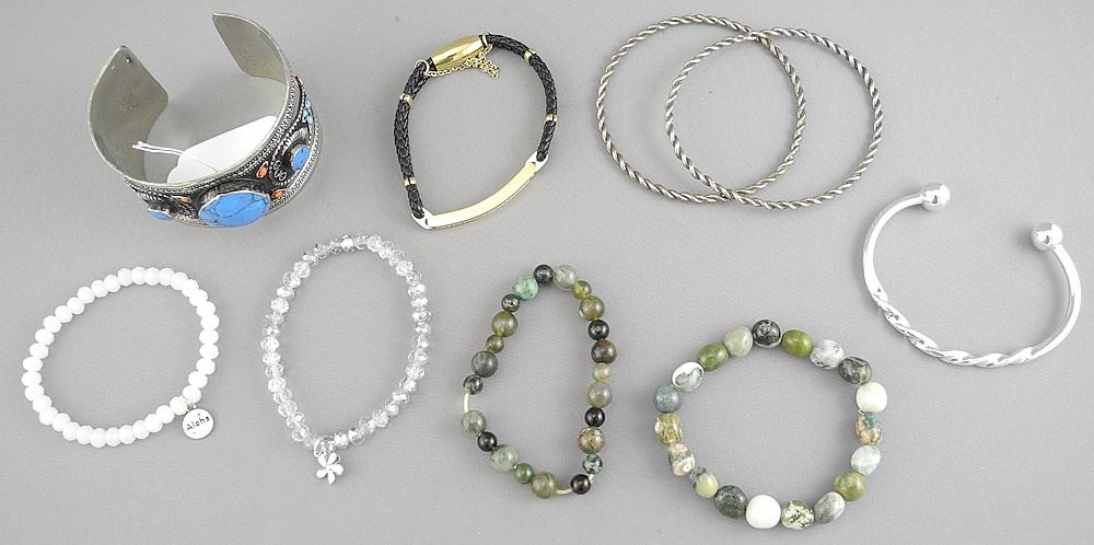 LOT 281 Jade & Stone Bracelet Collection. Estimate: $50 - $60 Sold For: $15 Auction Date: Tuesday, July 08 2025 at 4:00 PM