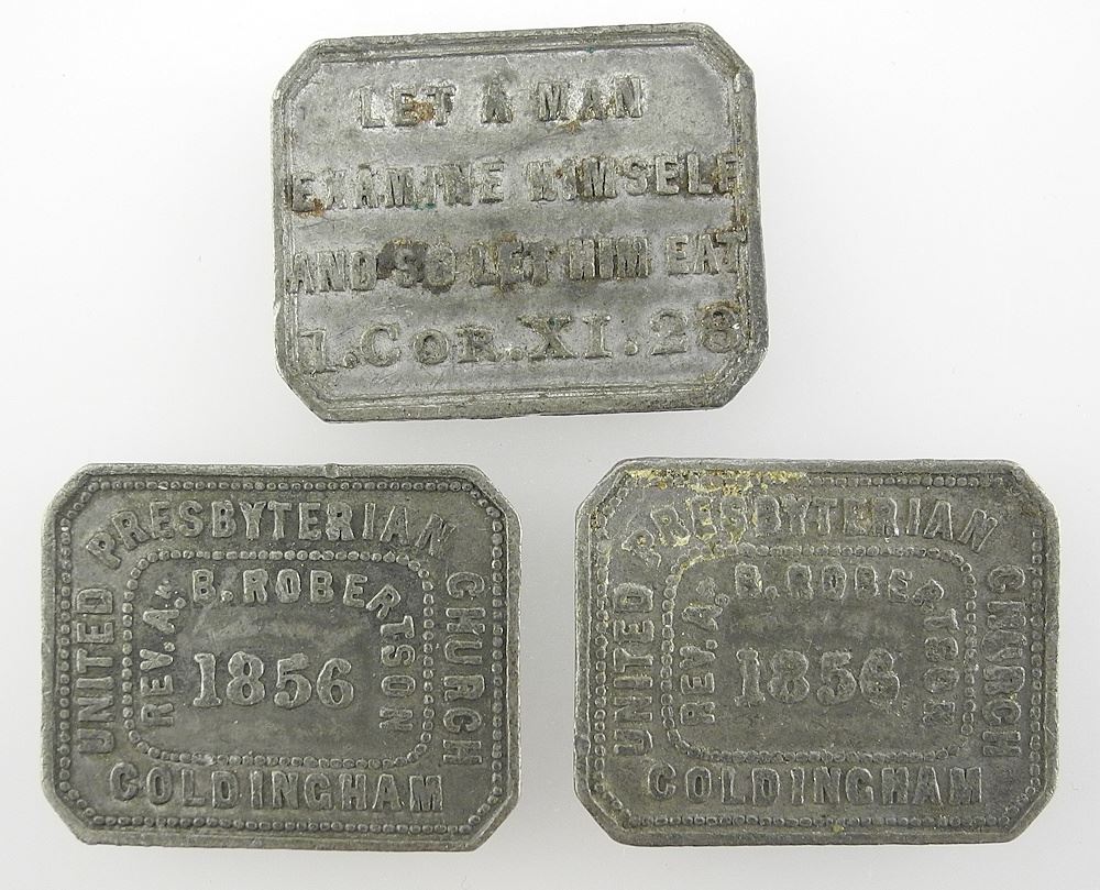 LOT 78 Three 19th C. Scottish Church Tokens C.1845-1856. Estimate: $50 - $60 Sold For: $25 Auction Date: Tuesday, July 08 2025 at 4:00 PM