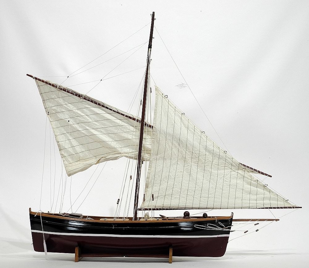Wooden Model Sailing Vessel, 27" in Length with Sail.