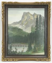 Hand Tinted Photograph by Joseph F. Spalding, 9 1/2 x 7 1/2", "Mt. Burgess Emerald Lake...".
