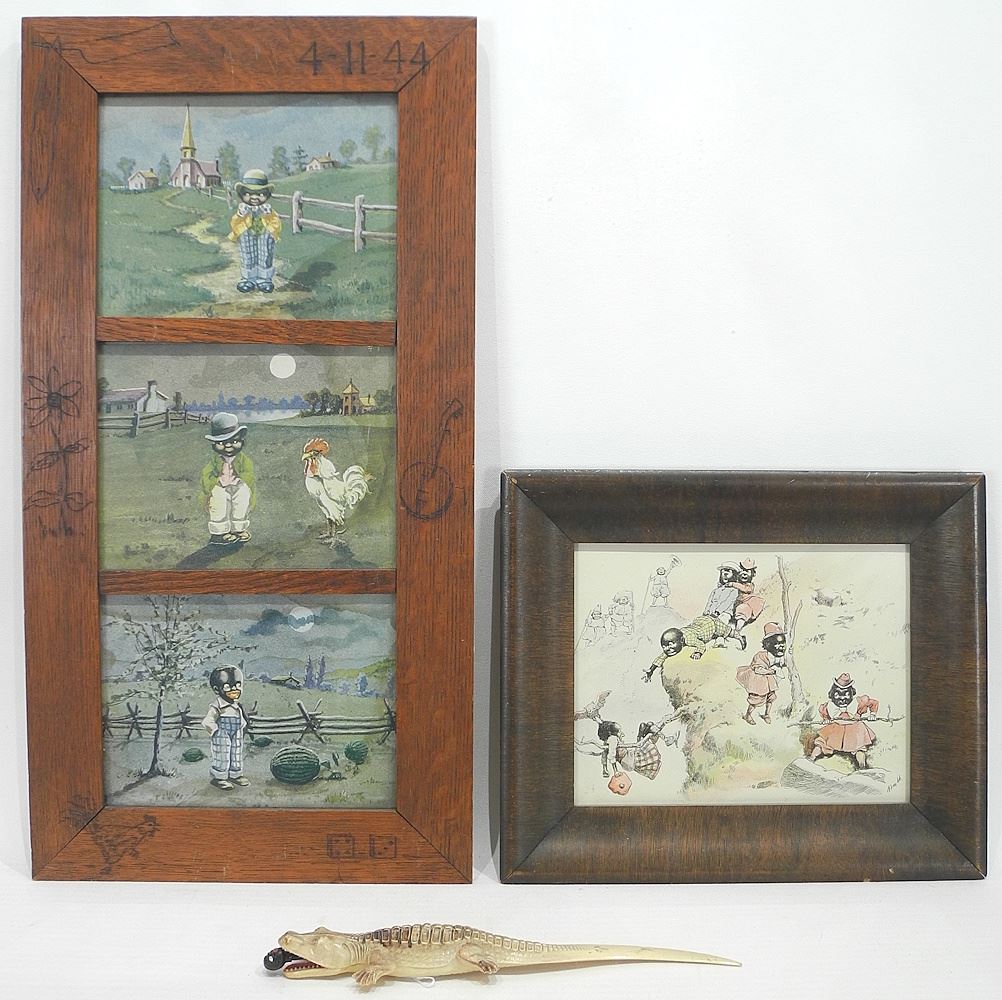 LOT 201 Collection Black Americana: Two Prints & Celluloid Alligator Figure, Three Pieces. Estimate: $60 - $100 Sold For: $70 Auction Date: Tuesday, July 08 2025 at 4:00 PM