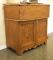 Oak Louvered Door Storage Cabinet with Hinged Top.