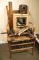 Canadiana Oak Armchair with Wall Cabinet/Cobblers Tools/Telephone/ Skates