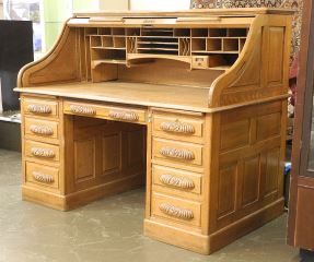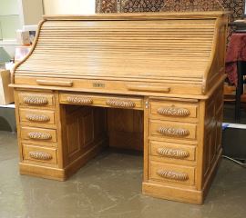 Golden Oak Rolltop Desk, 50"h.