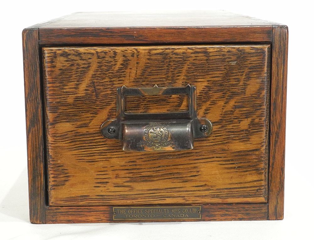 LOT 273 "Labour Saving Office Devices" Oak File Drawer, 6 x 8 x 16". Estimate: $50 - $60 Sold For: $60 Auction Date: Tuesday, September 09 2025 at 4:00 PM