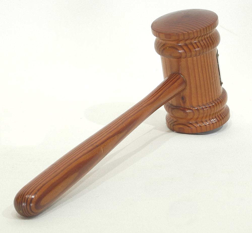 1953 Silver Mounted Prime Douglas Fir Gavel, Compliments of H.R. Macmillan, 9 1/2"L.