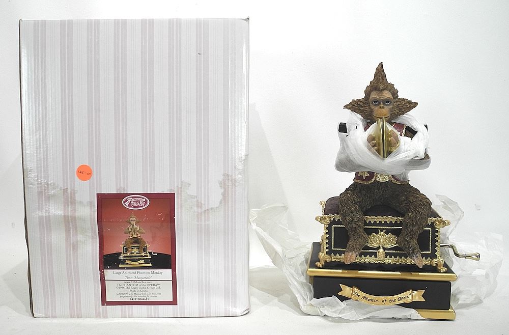 LOT 281 The San Francisco Music Box Co. Large Monkey Automaton with Original Box. Estimate: $60 - $100 Sold For: $45 Auction Date: Tuesday, September 09 2025 at 4:00 PM
