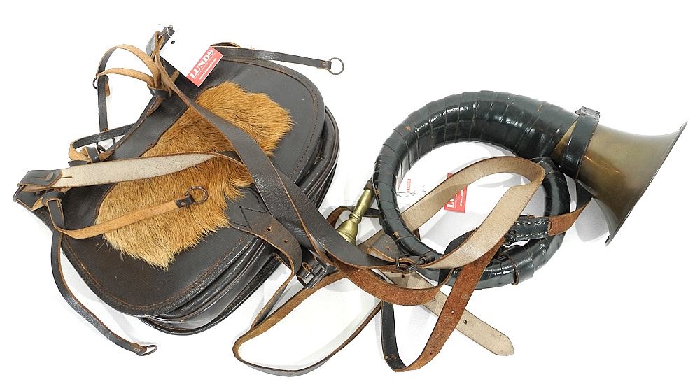 Northern German Hunting Horn & Hide Satchel, 13 1/8"L & 10 1/4"w.