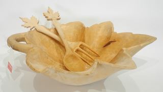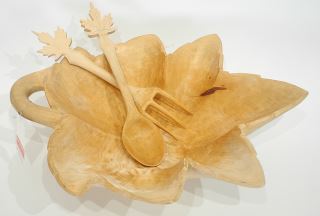 Canadiana Maple Leaf Salad Bowl & Tongs signed Arthur Dube.