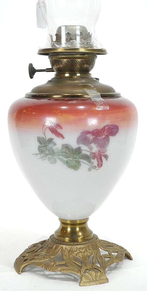 LOT 8 19th C. Enameled Glass Oil Lamp, 1 14 5/8"h. Estimate: $50 - $60 Sold For: $25 Auction Date: Tuesday, September 09 2025 at 4:00 PM