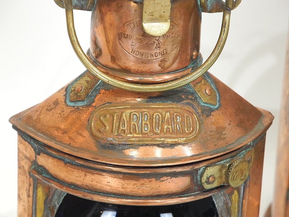 LOT 20 Three Reproduction Copper Marine Signal Lamps Port/Starboard/Stern, 7 & 8 1/4"H. Estimate: $50 - $100 Sold For: $45 Auction Date: Tuesday, September 09 2025 at 4:00 PM