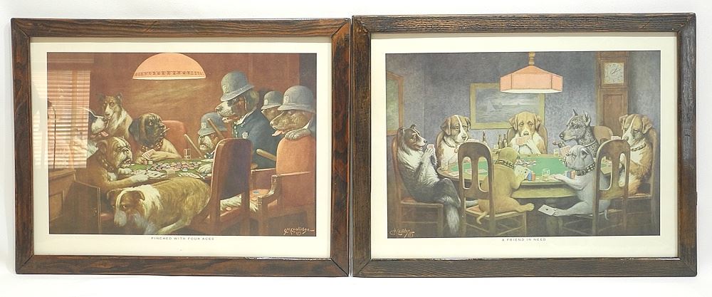 LOT 184 Five Colour Prints by C.M.Coolidge, 11 3/8 x 15 1/2", "Dogs Playing Poker". Estimate: $60 - $100 Sold For: $140 Auction Date: Tuesday, September 09 2025 at 4:00 PM