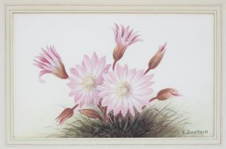 LOT 208 Watercolour signed E. (Emily) Sartain, 5 1/8 x 8 1/4" "Pink Flowers". Estimate: $50 - $60 Sold For: $40 Auction Date: Tuesday, March 17 2026 at 4:00 PM