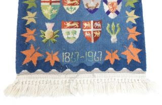 LOT 32 Canada 1967 Provincial Emblems Hand Knotted Carpet Approximately 25 x 58". Estimate: $50 - $100 Sold For: $120 Auction Date: Tuesday, March 17 2026 at 4:00 PM
