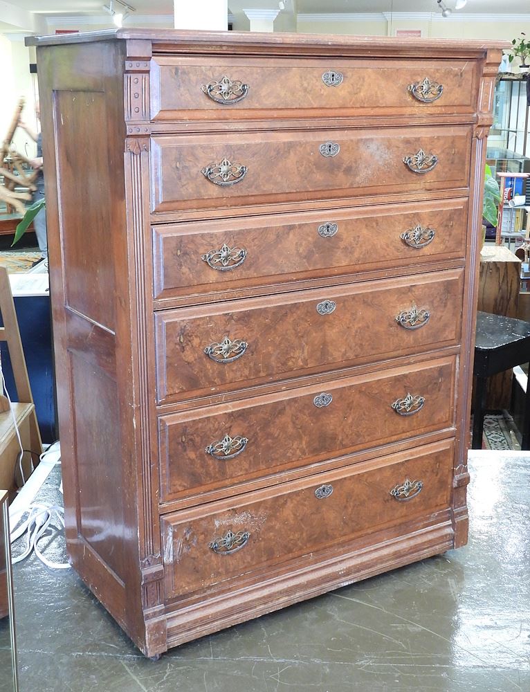 Late 19th C. Walnut Six Drawer Chest 53"h.