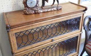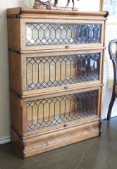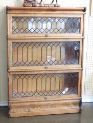 LOT 20 Three Section Oak & Leaded Glass Barristers Bookcase, 48 3/4"h. Estimate: $300 - $500 Sold For: $800 Auction Date: Tuesday, March 17 2026 at 4:00 PM