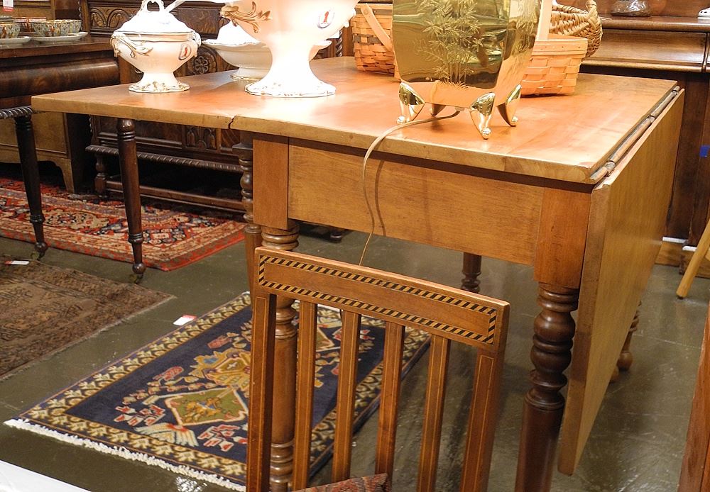19th C. Cherry Drop Side Table, 28 1/2 x 42 x 21".