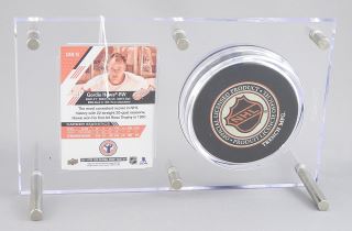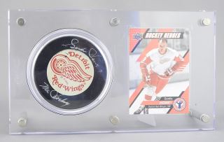 Gordie Howe Autograph Puck, 5 x 8 1/2".