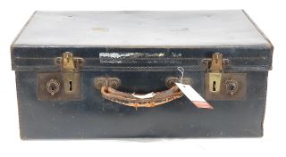 Leather Valise (17 1/2"w) with Old Cameras/Regimental Photo/Colmer Flags/Service Cap.