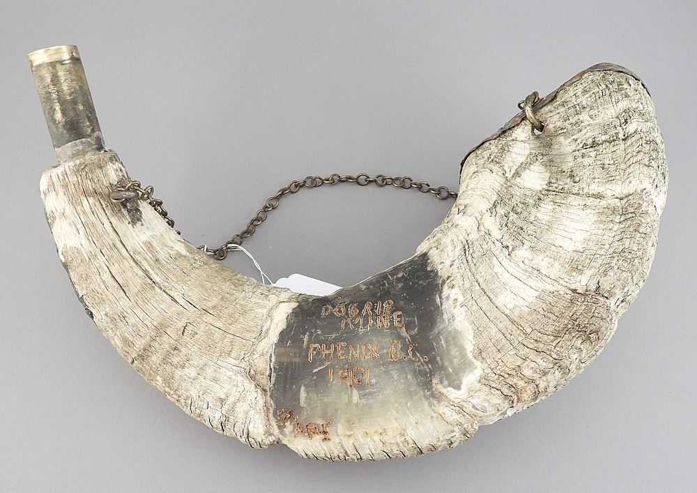 Ram's Horn Trumpet Inscribed "Dogrie Mine Phenix BC 1901", 12 3/4"L.