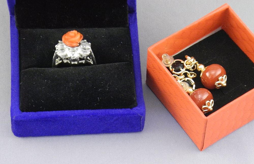 Group of Jewellery Items: Turquoise Bead Necklace (22"L)/Conch Shell Necklace/Coral Ring &...