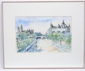 Watercolour signed Anne Lucreh Romaszewska, 10 5/8 x 16 1/4" "Rideau Canal".