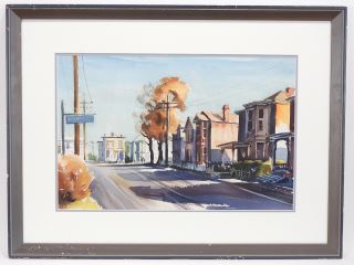 Unsigned Watercolour, 13 x 19 1/4" "Street Scene With Victorian Houses"