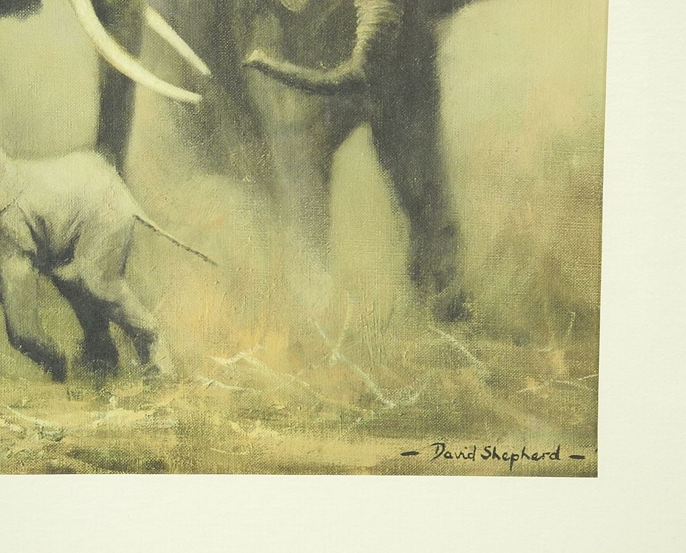 LOT 180 Colour Print signed David Shepherd, 19 1/2 x 37 1/4", "Elephants at Amboselli". Estimate: $60 - $100 Sold For: $40 Auction Date: Tuesday, March 17 2026 at 4:00 PM
