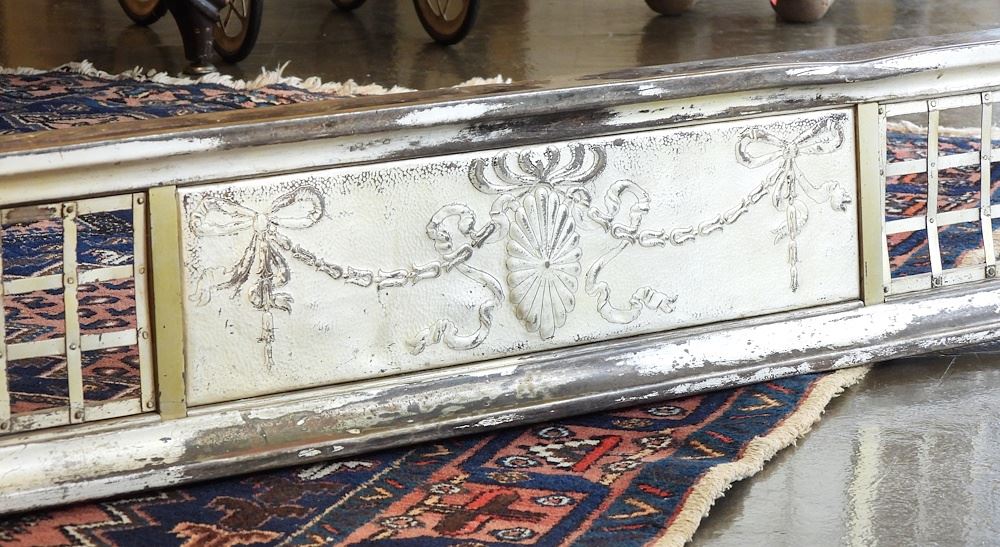 LOT 7 19th C. Plated Metal Fire Fender, 7 1/4h x 70 1/2"L. Estimate: $50 - $100 Sold For: $25 Auction Date: Tuesday, March 17 2026 at 4:00 PM