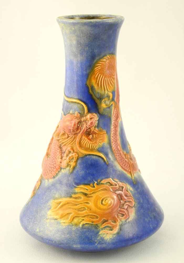 LOT 637 Bretby art pottery dragon decorated vase, 8 1/4". Estimate: $25 - $50 Sold For: $110 Auction Date: Tuesday, March 28 2017 at 7:00 PM