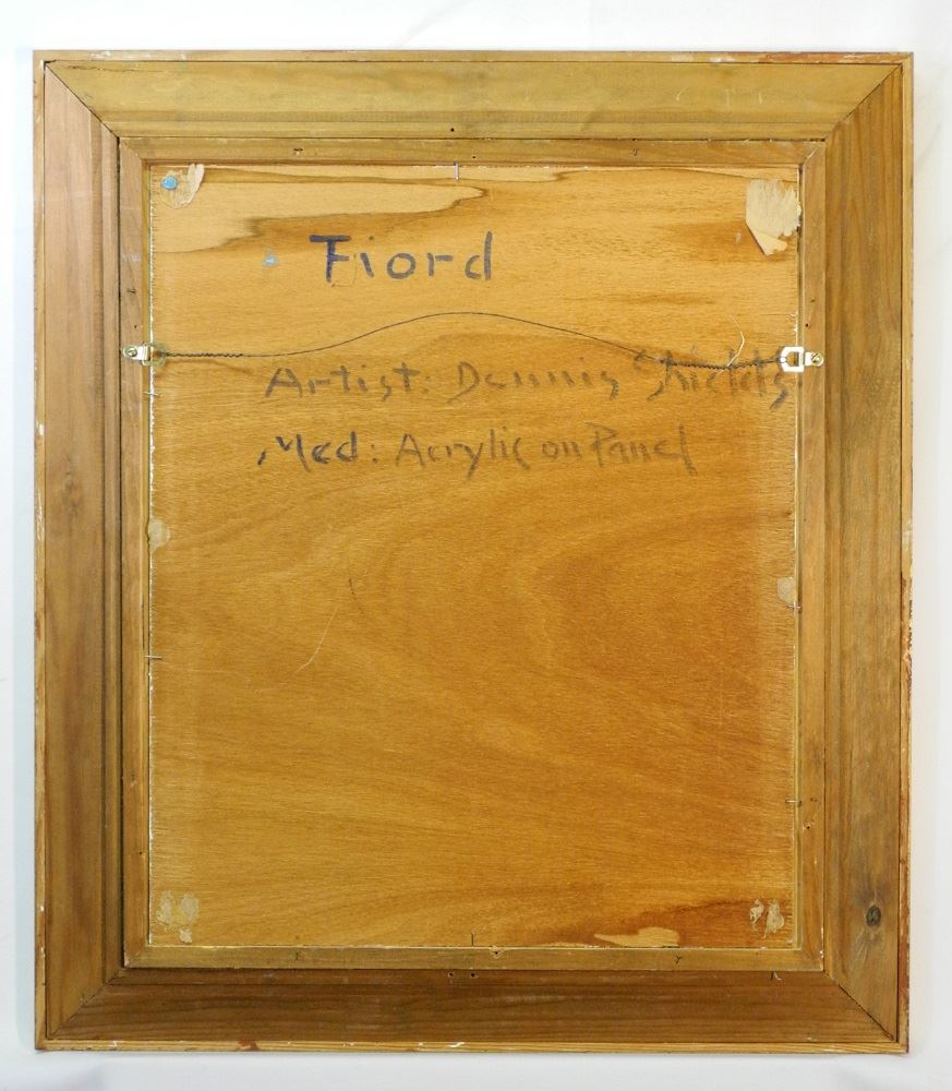 LOT 538 Acrylic on panel by Dennis Shields, 17 1/2"x 21", "Fjord". Estimate: $25 - $50 Auction Date: Tuesday, May 29 2018 at 7:00 PM