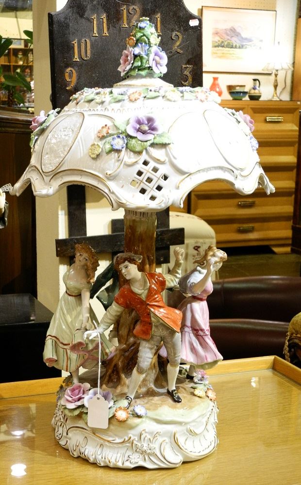 LOT 665 German Democratic Republic porcelain figured table lamp. Estimate: $75 - $125 Sold For: $290 Auction Date: Tuesday, November 19 2019 at 7:00 PM