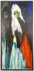 LOT 441 Oil on canvas signed Teresa Vilarrubias, 50" x 23", "Concurso San Pol de Mer". Estimate: $75 - $125 Auction Date: Tuesday, November 10 2020 at 7:00 PM