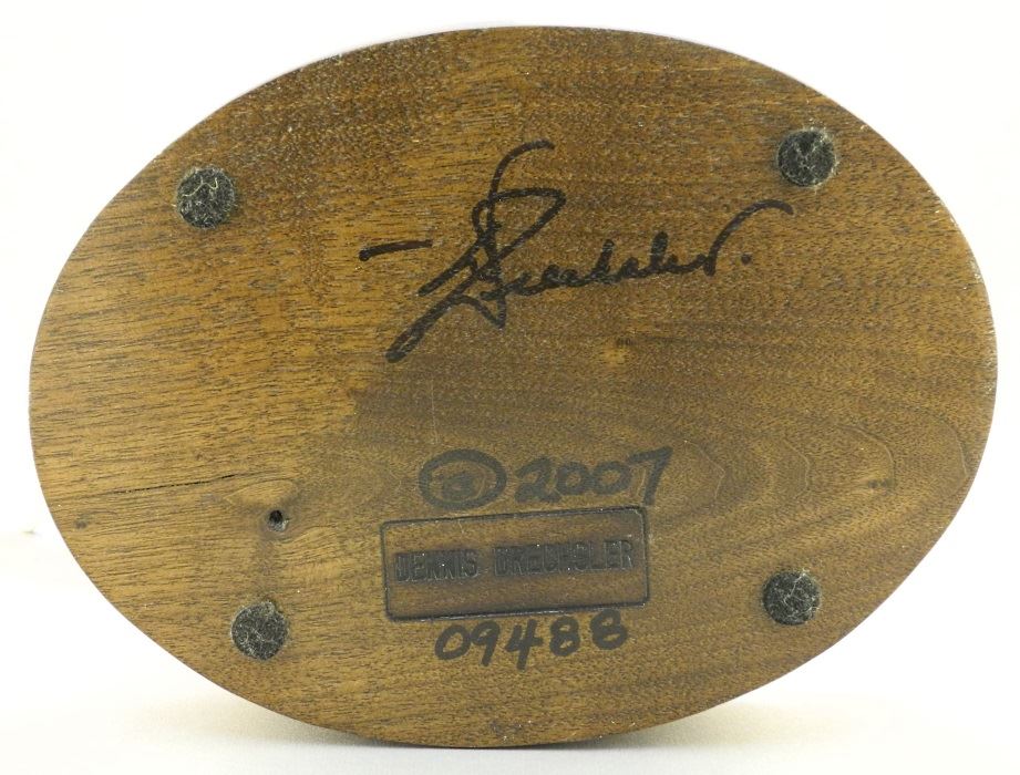Wood carved beluga whales attributed to Dennis Drechsler, 15" high.