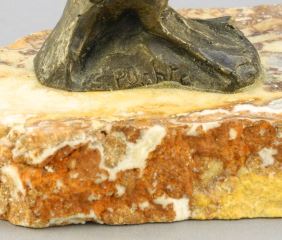 LOT 218 Bronze Duck on Marble Plinth, signed S.(Siggy) Puchta, 3" x 5" x 4". Estimate: $60 - $100 Sold For: $70 Auction Date: Tuesday, March 23 2021 at 6:00 PM