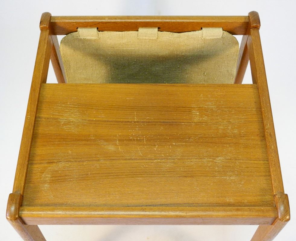 LOT 200 Spottrup Danish Modern Teak & Linen End Table, 18" wide. Estimate: $50 - $60 Sold For: $70 Auction Date: Tuesday, March 23 2021 at 6:00 PM