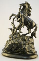 LOT 101 Pair of Ebonized Spelter Marly Horses, 11" high. Estimate: $60 - $100 Sold For: $90 Auction Date: Tuesday, March 23 2021 at 6:00 PM