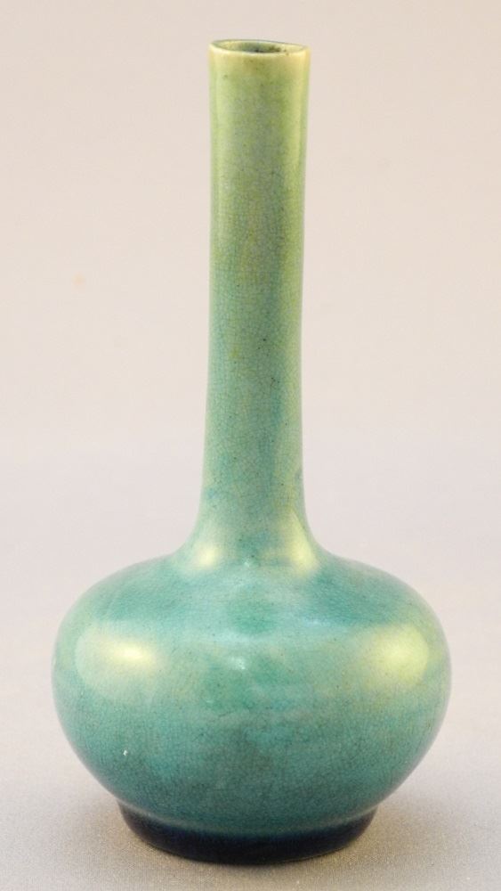 LOT 194 Miniature Chinese Monochrome Turquoise Glazed Bottle, 3 1/2" high. Estimate: $50 - $100 Sold For: $40 Auction Date: Tuesday, May 18 2021 at 6:00 PM