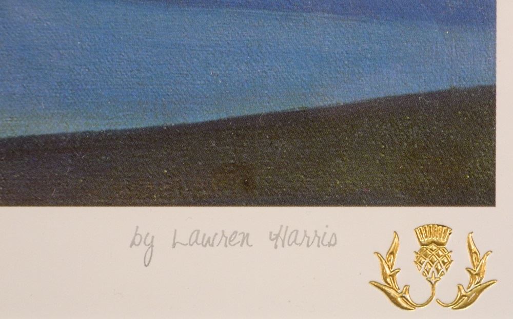Colour Print Signed Lawren Harris, #929/1917, 19" x 23", "Lake & Mountains".