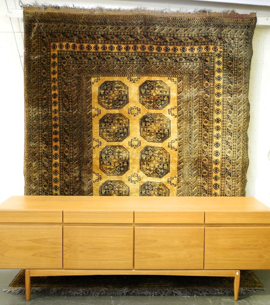Gold & Ochre Tone Bokhara Carpet, approximately 10' x 7'7".