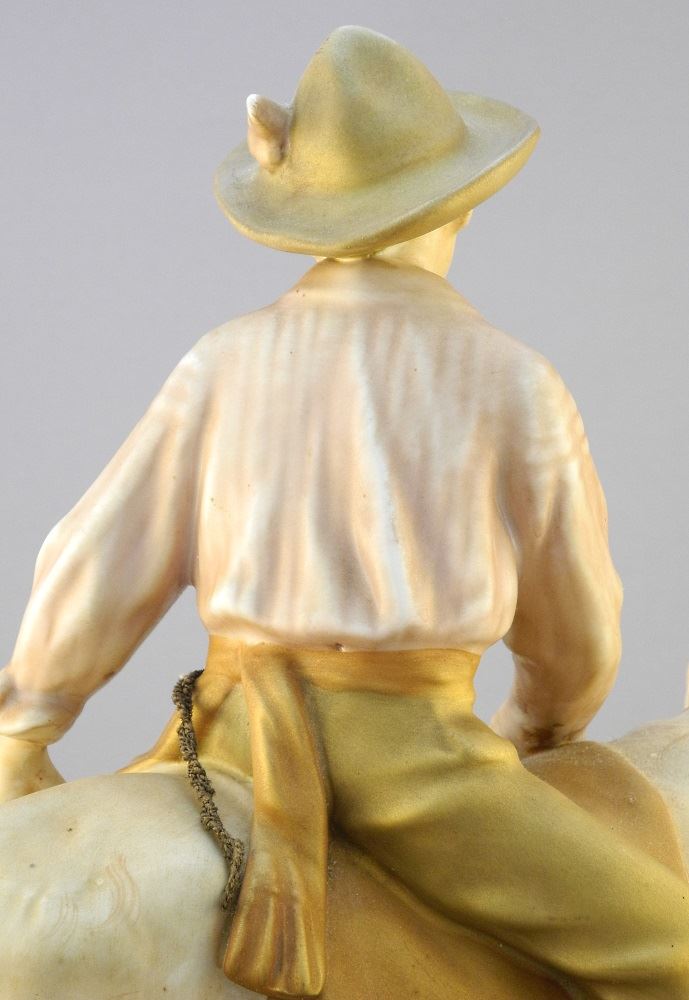 LOT 132 Royal Dux Porcelain Figure, 14 3/4" high, "Boy on Donkey". Estimate: $200 - $300 Auction Date: Tuesday, May 18 2021 at 6:00 PM