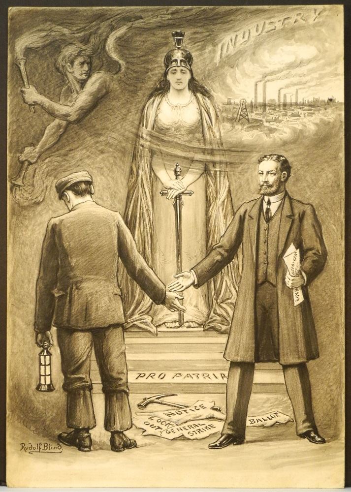 Sketch signed Rudolph Blind, 21 1/2" x 15", "Pro Patriot".