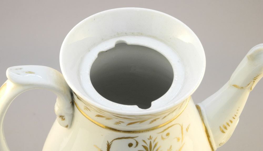 LOT 14 2 Antique European Porcelain Coffee Pots, 11" high. Estimate: $60 - $100 Sold For: $90 Auction Date: Tuesday, May 18 2021 at 6:00 PM