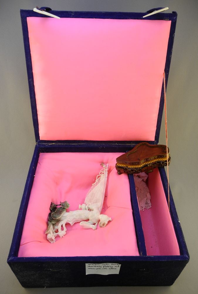 LOT 111 Chinese Hardstone Maiden with Basket (5 3/8") with Stand & Box. Estimate: $125 - $175 Auction Date: Tuesday, November 01 2022 at 6:00 PM