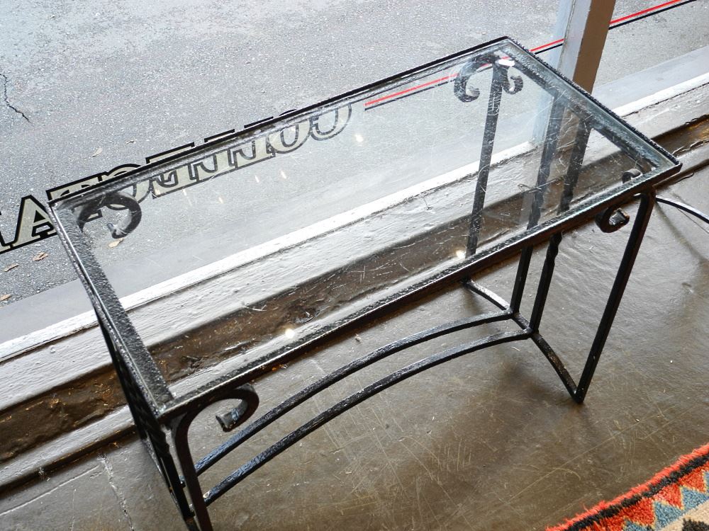 LOT 15 Art Deco Wrought Iron Glass Top Occasional Table, 26 1/2" Wide. Estimate: $80 - $100 Sold For: $130 Auction Date: Tuesday, November 01 2022 at 6:00 PM