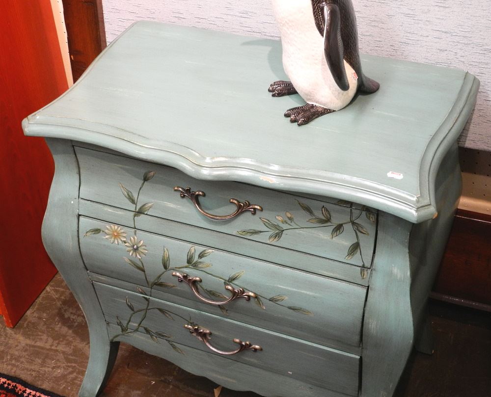 LOT 211 Turquoise Painted Bombe Chest, 27" High. Estimate: $100 - $200 Auction Date: Tuesday, November 01 2022 at 6:00 PM