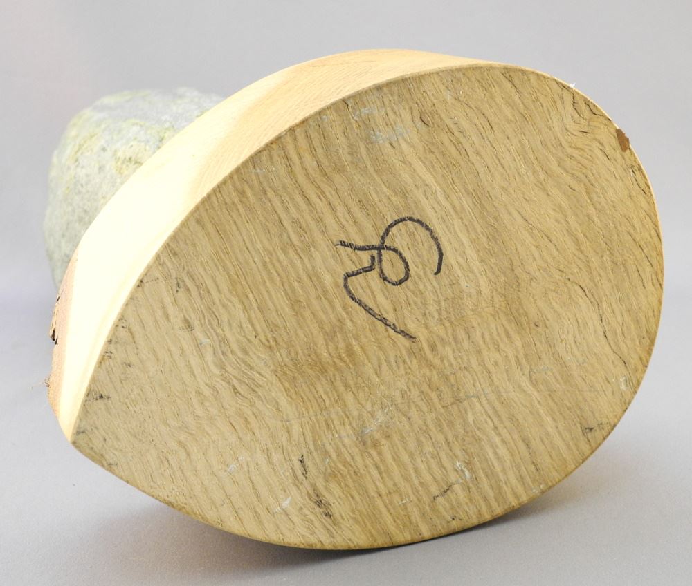 Decorative Stone on Live Edge Base, 14" High.