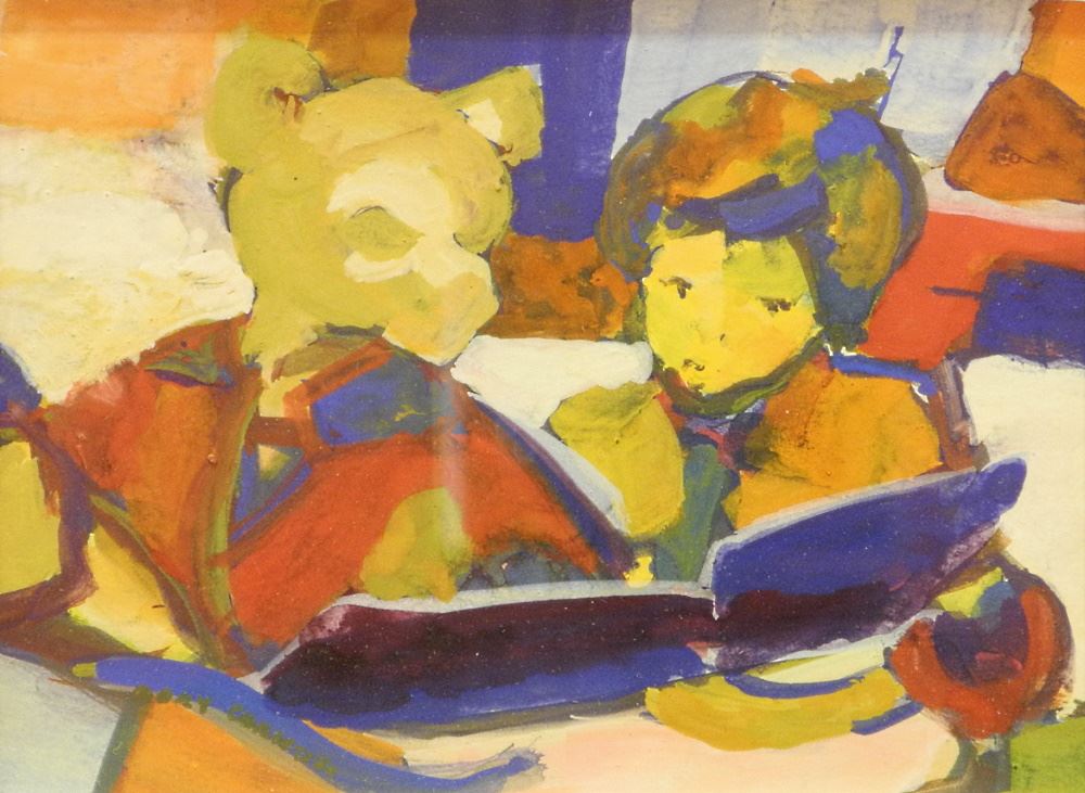 LOT 30 Gouache Signed Mary Corneille Verso, 3 7/8" x 5 3/8", "My Teddy Bear's Song". Estimate: $50 - $60 Sold For: $25 Auction Date: Tuesday, November 01 2022 at 6:00 PM