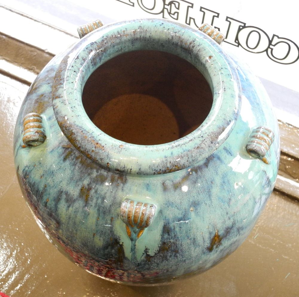 Jun-Style Glazed Stoneware Vase with Lugged Shoulder, 24 3/4" High.