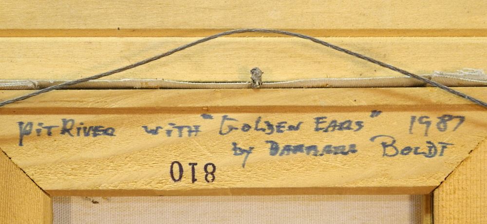 LOT 154 Oil on Canvas Signed Barbara Boldt, 10" x 8", "Pit River with Golden Ears". Estimate: $60 - $100 Sold For: $45 Auction Date: Tuesday, January 24 2023 at 6:00 PM